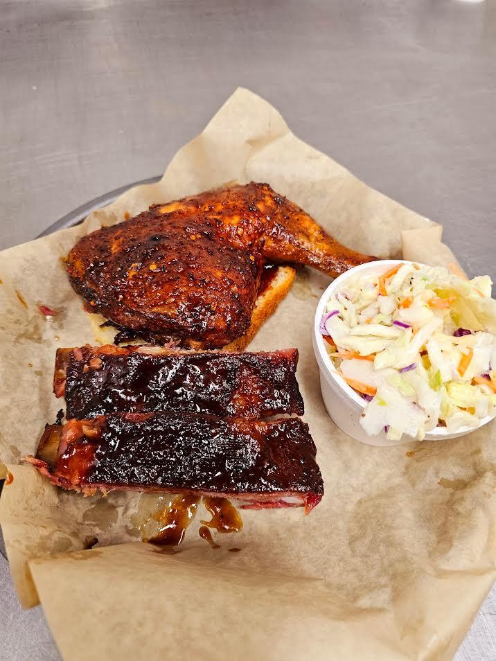 Choose one of the following: brisket, pork, turkey, burnt ends or andouille sausage. Served with two side dishes and a slice of bread.