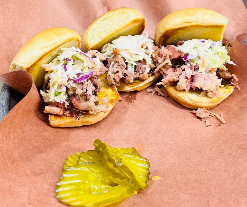 Three sliders on toasty Brioche buns with our award winning, slow smoked pork and topped with our homemade creamy coleslaw.